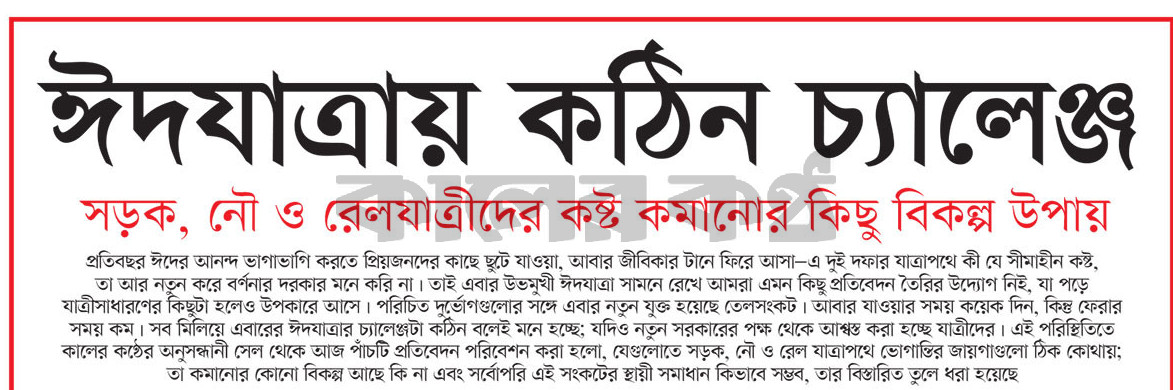 ঈদযাত্রায় কঠিন চ্যালেঞ্জ - দৈনিক কালের কণ্ঠের প্রধান খবর এটি।