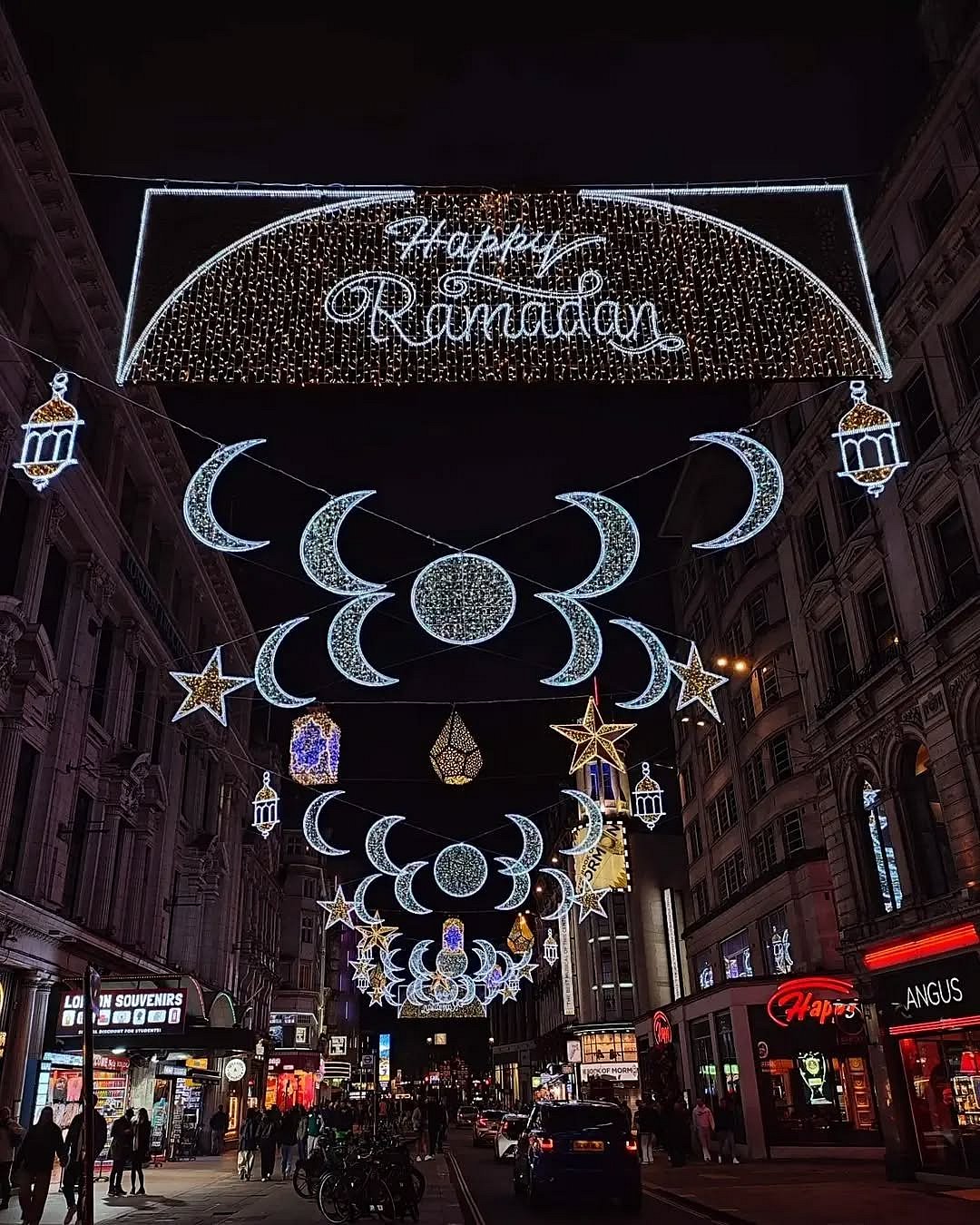 বিশ্বের বহু দেশে যুগ যুগ ধরেই ক্রিসমাস লাইটস দিয়ে সড়ক সাজানোর প্রচলন আছে বড়দিনের সময়। কিন্তু ২০২৩ সালে প্রথমবারের মতো লন্ডনের বিখ্যাত ওয়েস্ট এন্ডে ঝলমলে 'রামাদান মুবারাক' লেখা লাইটের আলোকসজ্জা টাঙানো হয়। অক্সফোর্ড স্ট্রিট ও পিকাডিলি সার্কাসের মতো ব্যস্ত বাণিজ্যিক এলাকায় ঝুলে থাকা চাঁদ-তারার নকশা ও আরবি ক্যালিগ্রাফি এক নতুন বার্তা দেয়। আর তা হলো, রমজান এখন শুধু মুসলিম সম্প্রদায়ের নয়, বরং পুরো শহরের আনন্দের অংশ।