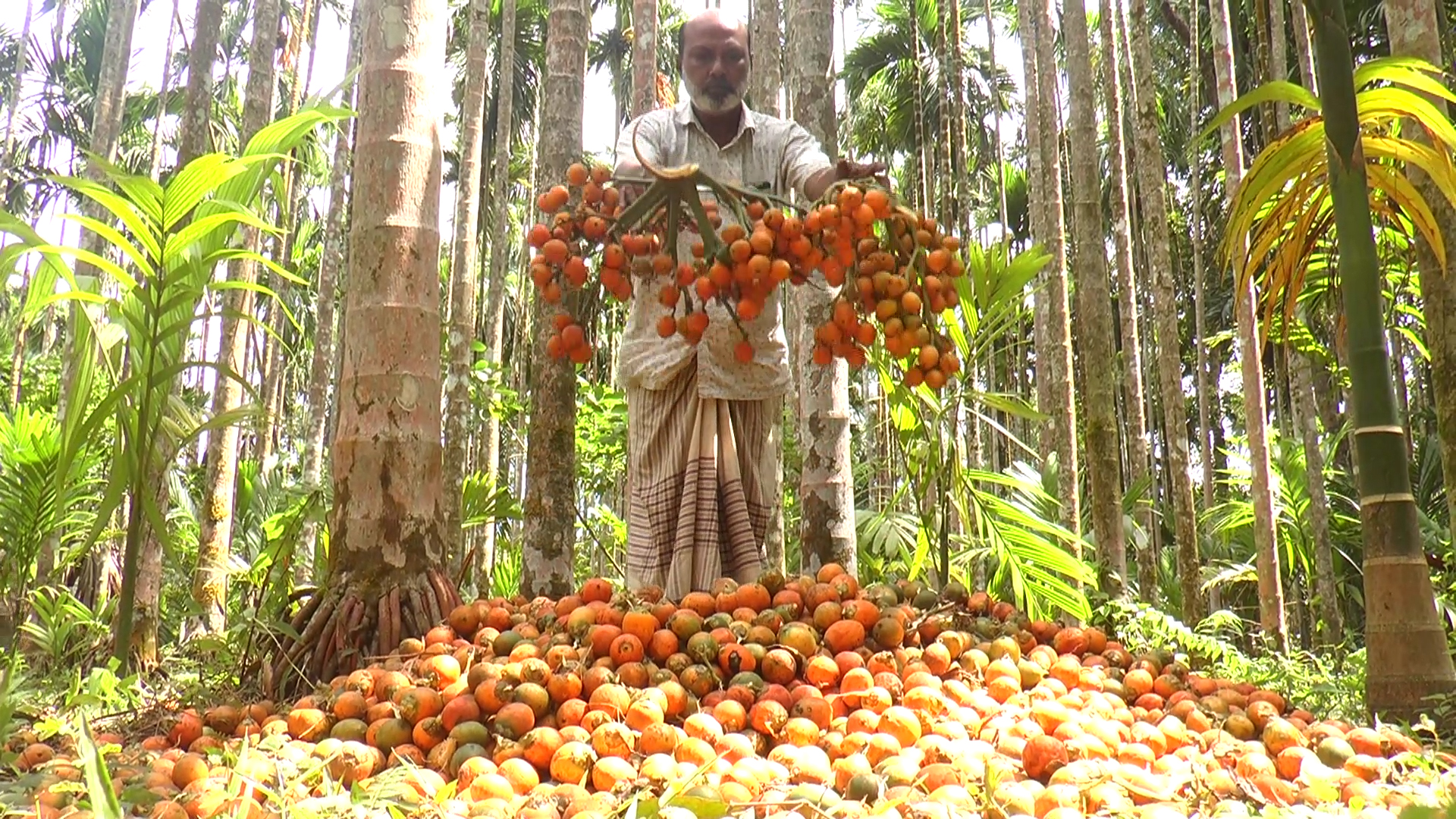ভোলায় হেক্টর প্রতি কাঁচা ৭ থেকে ৮ মেট্রিক টন সুপারির ফলন হয়েছে। ছবি: সময় সংবাদ