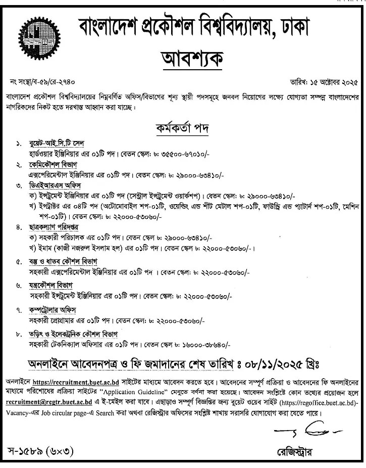 আবেদনের ঠিকানা: রেজিস্ট্রার, বাংলাদেশ প্রকৌশল বিশ্ববিদ্যালয়, ঢাকা-১২০৫।